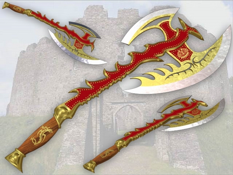 (Масса: 15.00) Цена: 260.00 кр. Долговечность: 0/50 Требуется минимальное: • Уровень: 9 • Сила: 35 • Ловкость: 35 • Интуиция: 35 • Выносливость: 35 • Мастерство владения топорами, секирами: 5 Действует на: • Сила: +4 • Мф. против критического удара (%): +50 • Мф. против увертывания (%): +55 Свойства предмета: • Урон: 16 - 35 • Минимальный урон: +16 • Максимальный урон: +35 • Мастерство владения топорами, секирами: +2 Особенности: • Рубящие атаки: Регулярны • Огненные атаки: Малы Дополнительная информация: • Часть комплекта: Комплект Утреннего Солнца